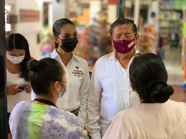 El candidato Luis Alberto Michel Rodríguez visitó algunos mercados del municipio para platicar con los comerciantes, escuchar sus necesidades, inquietudes y ayudar a impulsar el comercio local